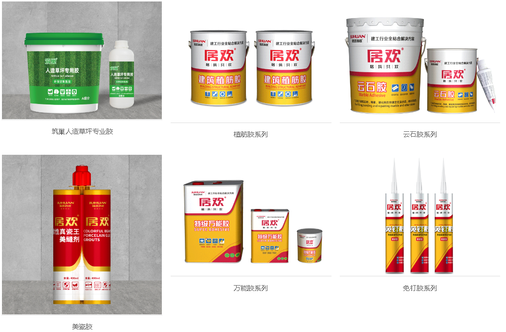 山东居欢是一家集技术研发、生产制造、国内外贸易为一体的新型材料科技有限公司。 公司产品涵盖了聚氨酯泡沫填缝剂、硅酮密封胶、装饰胶及相关建筑辅料等,拥有完整的产业链,防火发泡胶和聚氨酯粘结胶是公司的创新环保产品,先后通过国检中心和欧盟的各类检验,获得了10余项国家发明专利和实用新型专利。公司与北京化工大学组建了“北京化工大学—北京居欢聚氨酯工程技术中心”,形成了产学研战略合作的发展模式。公司的产品不仅遍布全国,还远销到德国、迪拜、俄罗斯、新西兰等30多个国家及地区,并沿着一带一路战略走向了中东和非洲等新兴市场,迈向了更为广阔的国际舞台。 截至目前,居欢公司已建成12条聚氨酯泡沫填缝剂生产线,2条印铁生产线,4条制罐生产线,彩色纸箱生产线,注塑机10台,以及多个建筑胶生产车间,产品覆盖发泡胶、硅酮密封胶、防水涂料、免钉胶、万能胶、云石胶、植筋胶、干挂胶、清洗剂、封边胶等多种品类。同时居欢公司拥有独立的实验室与技术研发人员,不断创新并研发新型环保的粘接建材。 山东居欢秉持着“共筑、共享、粘合”的企业文化,矢志成为建工行业的粘合伙伴,让居筑者人人共欢。 产品推荐